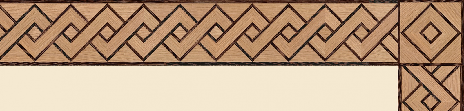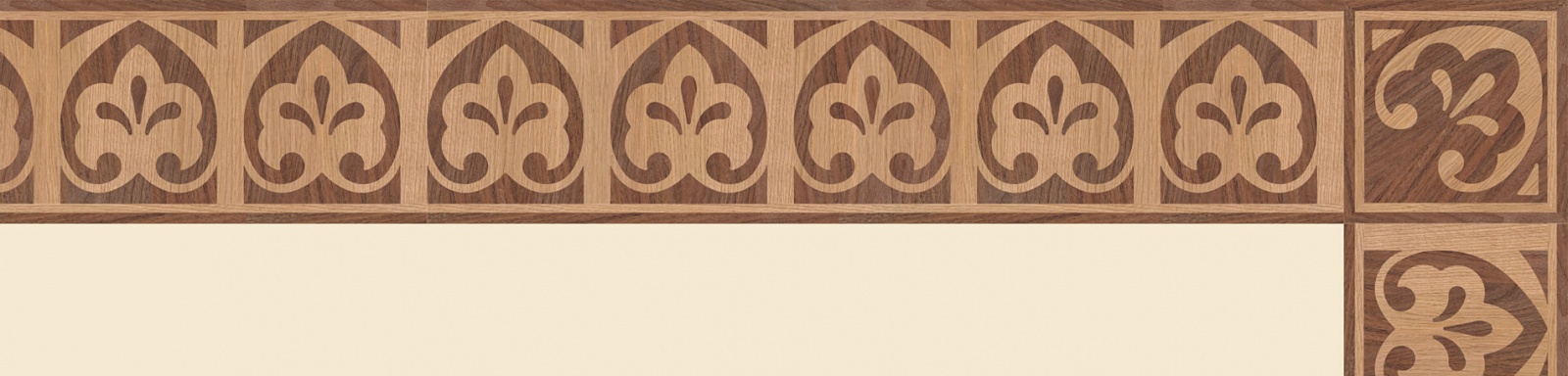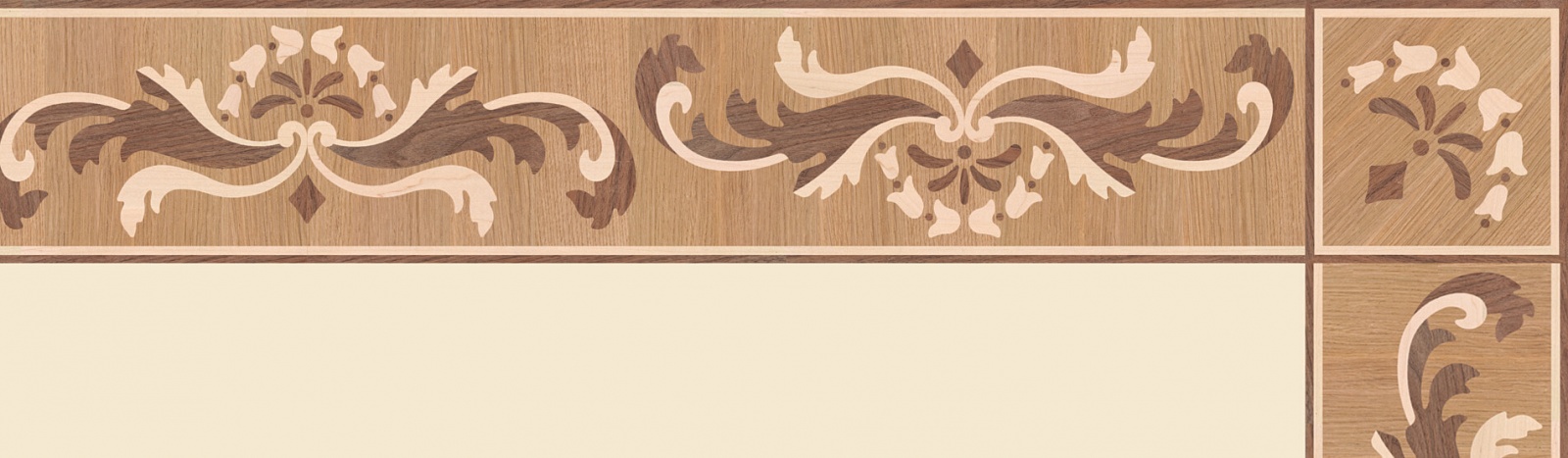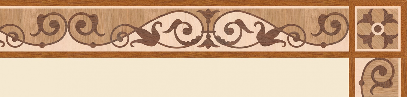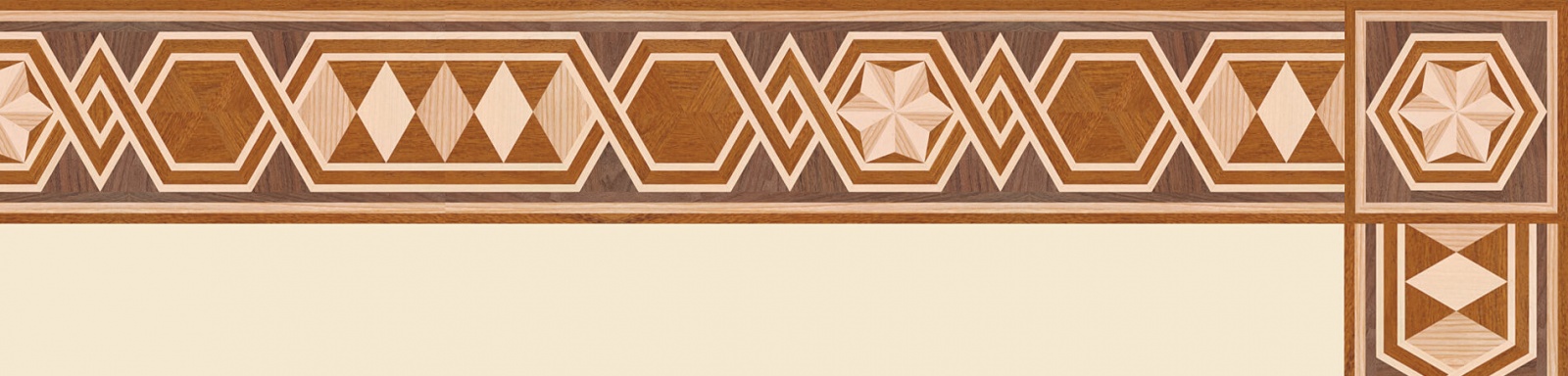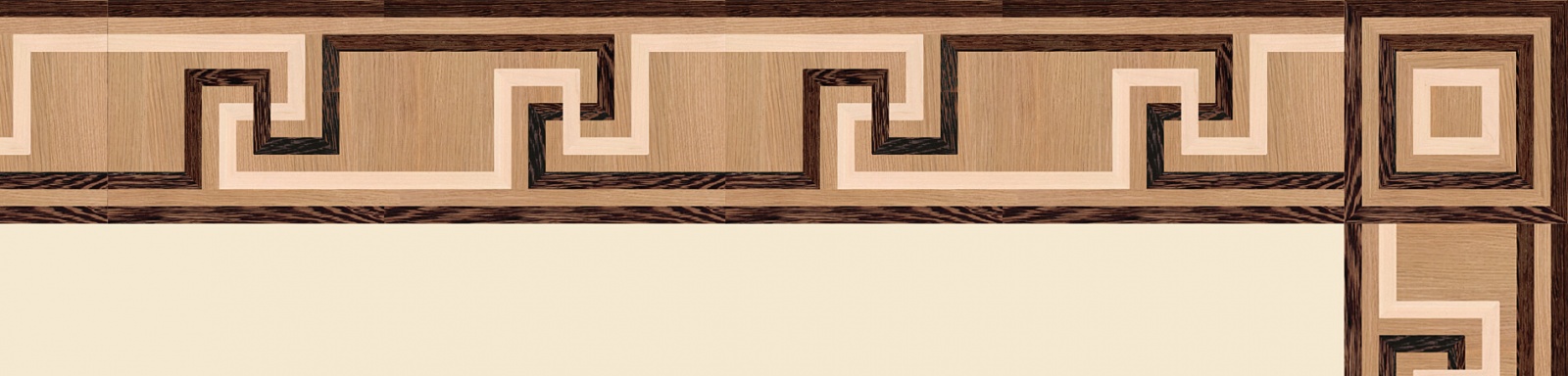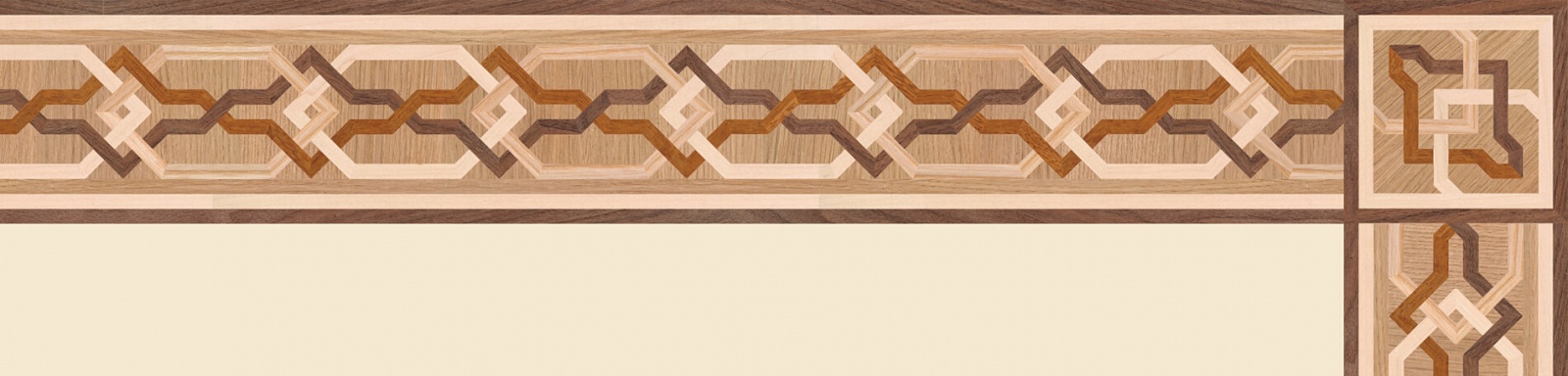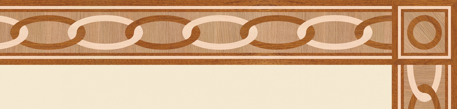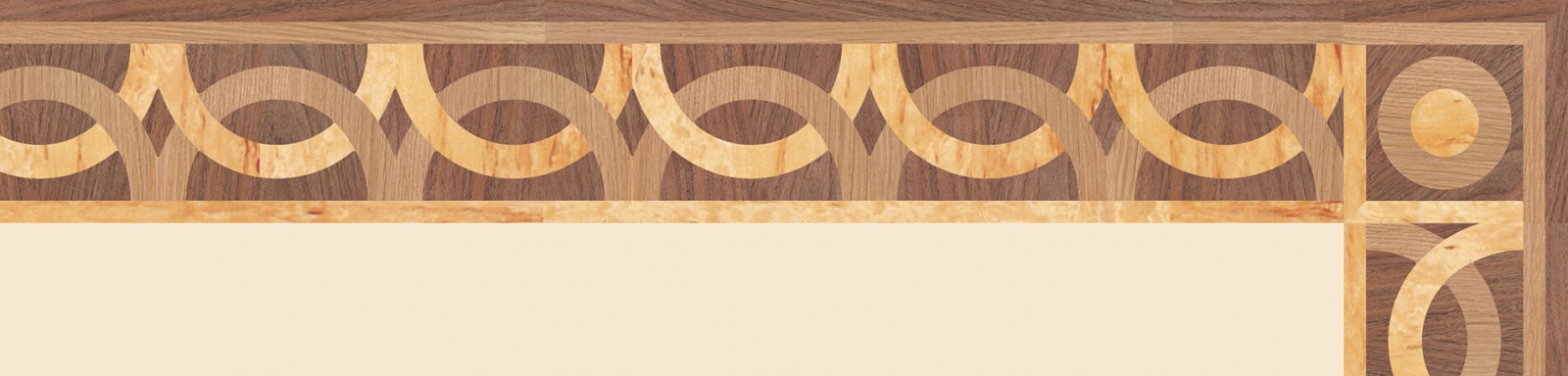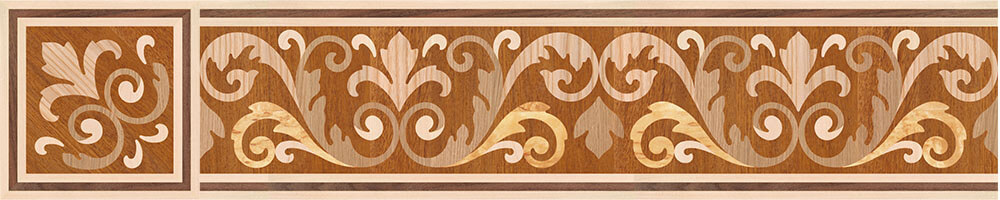 Художественные бордюры – важная составная часть художественного паркета. Они несут в себе сразу несколько функций. Первая из них – эстетическая, которая создается за счет законченности внешнего вида и рисунка пола. Вторая важная функция художественных бордюров, изготовленных из ценных пород дерева, состоит в эффективном зонировании пространства. С их помощью можно грамотно разделить пространство на нужные зоны, выделить центр комнаты, разметить площади для детской игры, отдыха, приема гостей. Зонирование с помощью художественных бордюров нередкое явление в современном оформлении помещений. Оно помогает избежать возведения физических заграждений между зонами, и тем самым сохраняет больше открытого пространства.