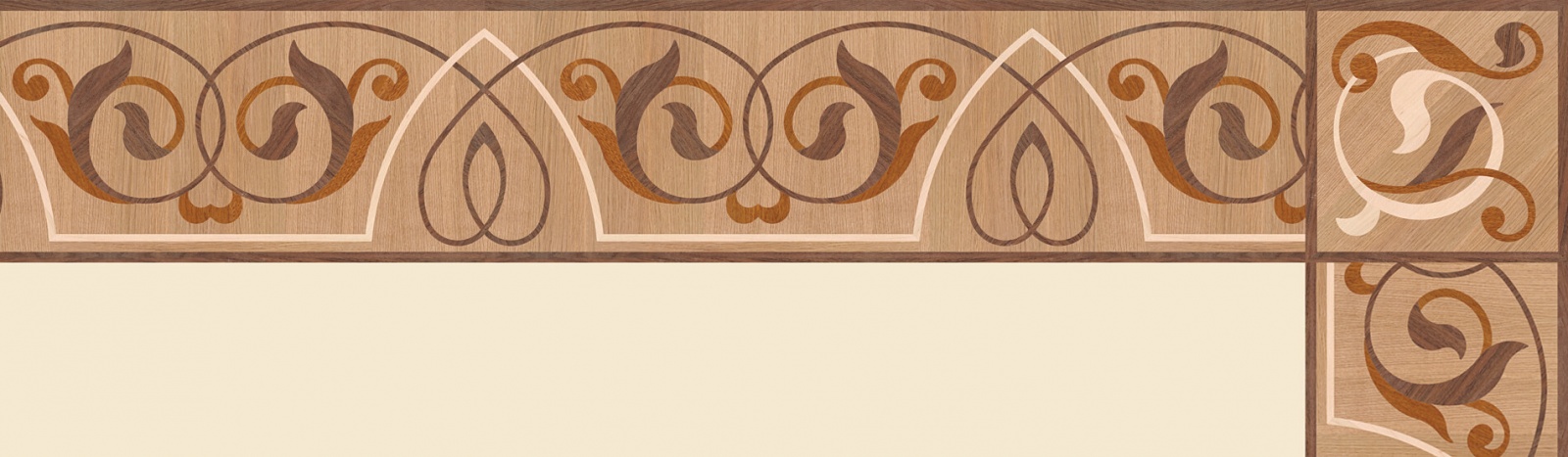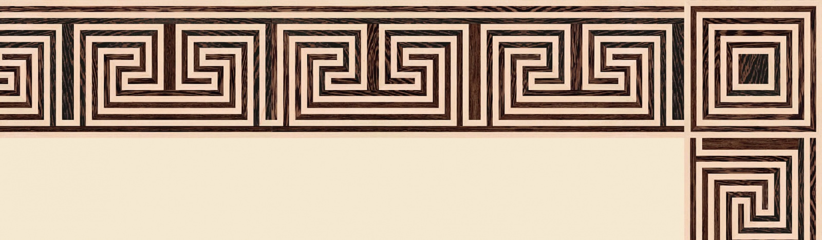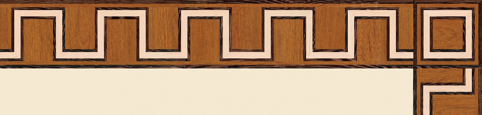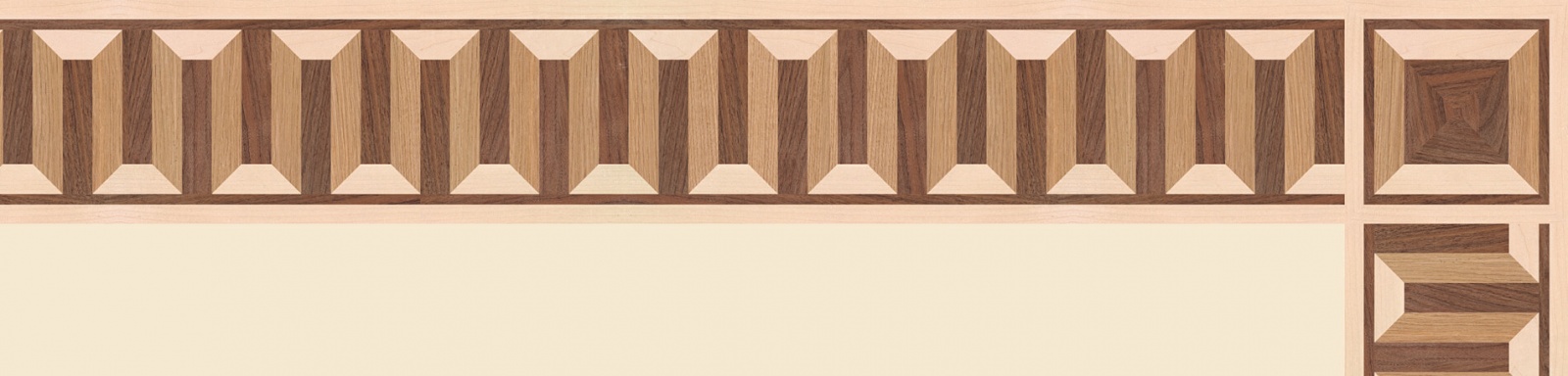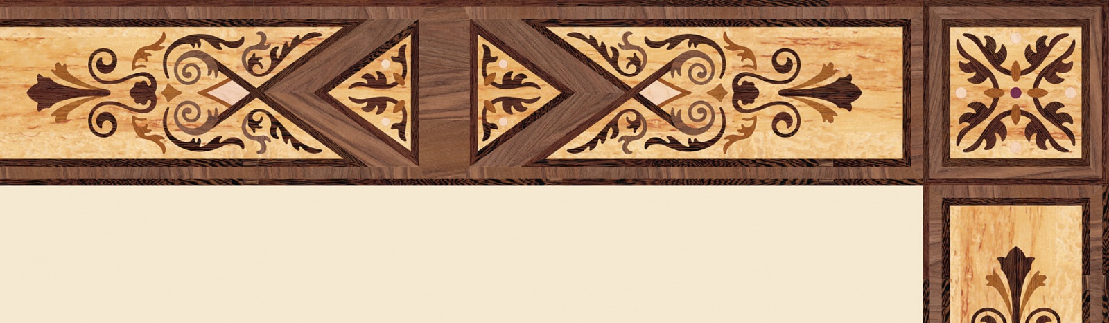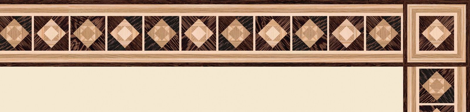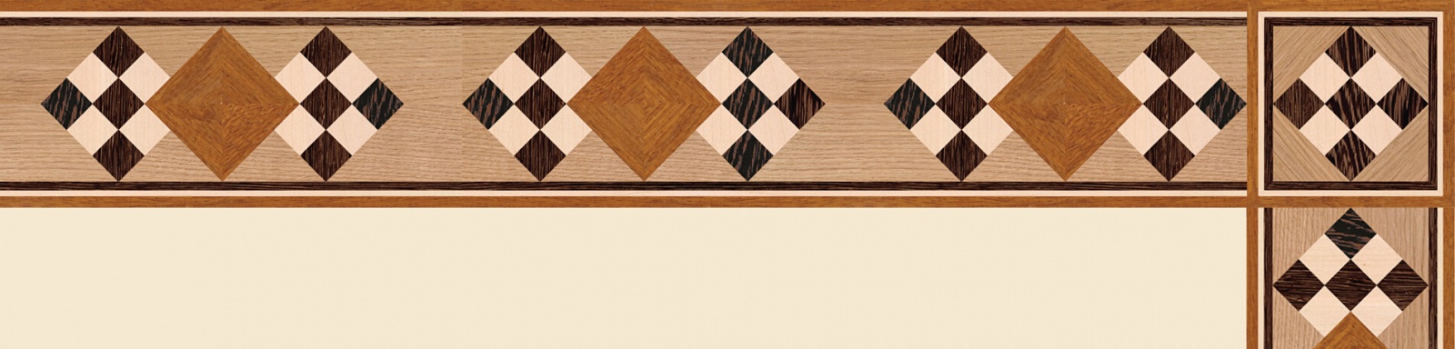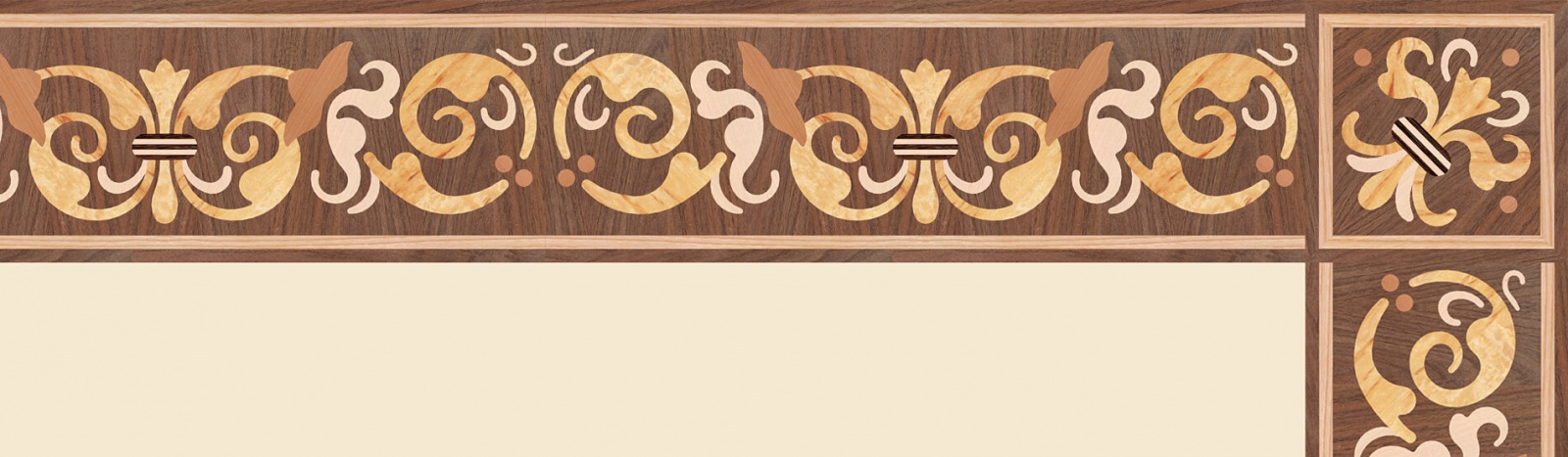 Художественные бордюры – важная составная часть художественного паркета. Они несут в себе сразу несколько функций. Первая из них – эстетическая, которая создается за счет законченности внешнего вида и рисунка пола. Вторая важная функция художественных бордюров, изготовленных из ценных пород дерева, состоит в эффективном зонировании пространства. С их помощью можно грамотно разделить пространство на нужные зоны, выделить центр комнаты, разметить площади для детской игры, отдыха, приема гостей. Зонирование с помощью художественных бордюров нередкое явление в современном оформлении помещений. Оно помогает избежать возведения физических заграждений между зонами, и тем самым сохраняет больше открытого пространства.