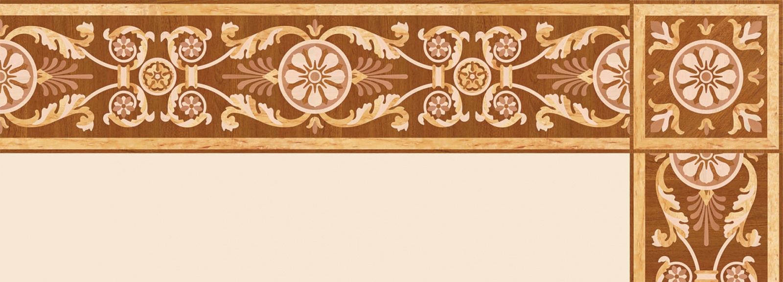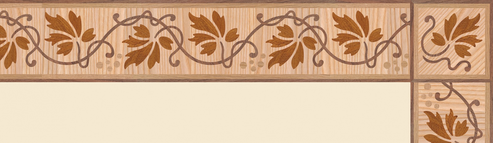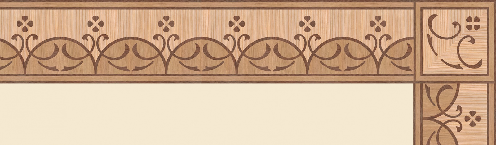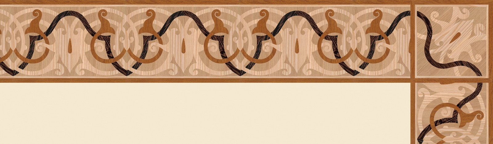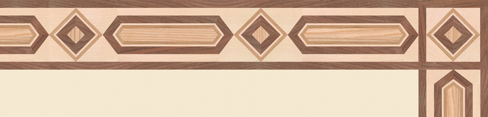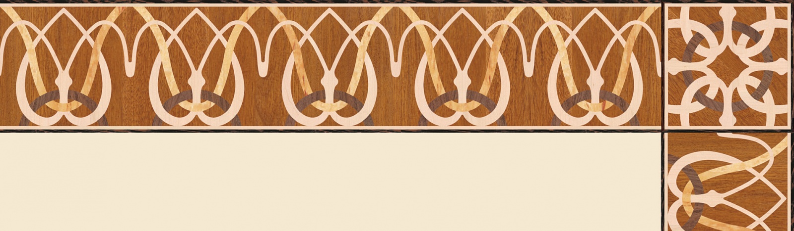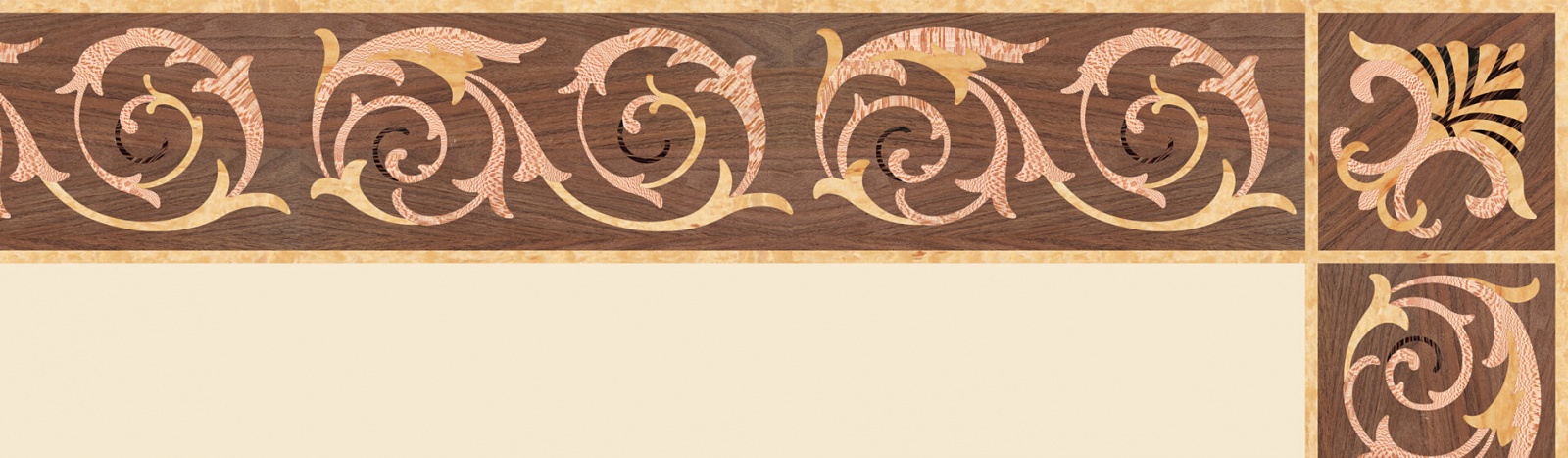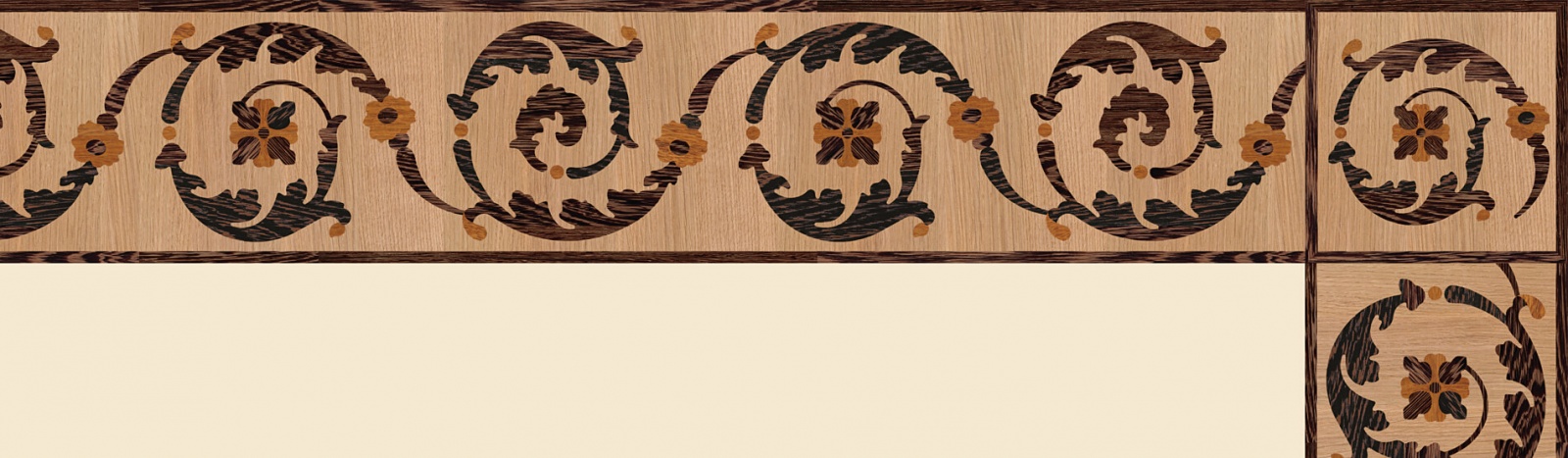 Художественные бордюры – важная составная часть художественного паркета. Они несут в себе сразу несколько функций. Первая из них – эстетическая, которая создается за счет законченности внешнего вида и рисунка пола. Вторая важная функция художественных бордюров, изготовленных из ценных пород дерева, состоит в эффективном зонировании пространства. С их помощью можно грамотно разделить пространство на нужные зоны, выделить центр комнаты, разметить площади для детской игры, отдыха, приема гостей. Зонирование с помощью художественных бордюров нередкое явление в современном оформлении помещений. Оно помогает избежать возведения физических заграждений между зонами, и тем самым сохраняет больше открытого пространства.