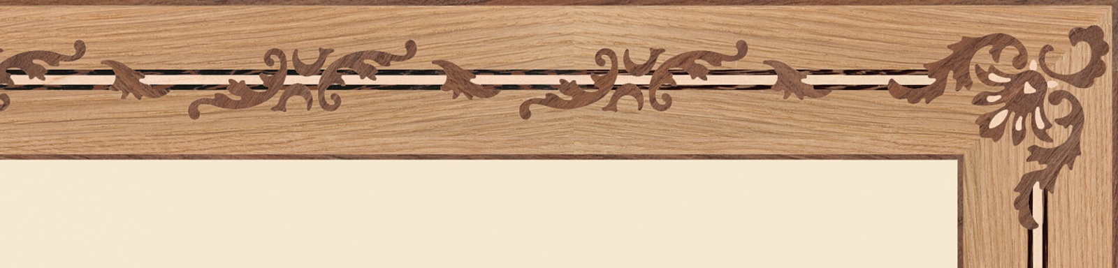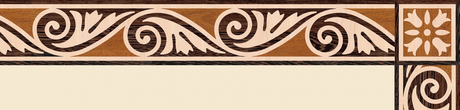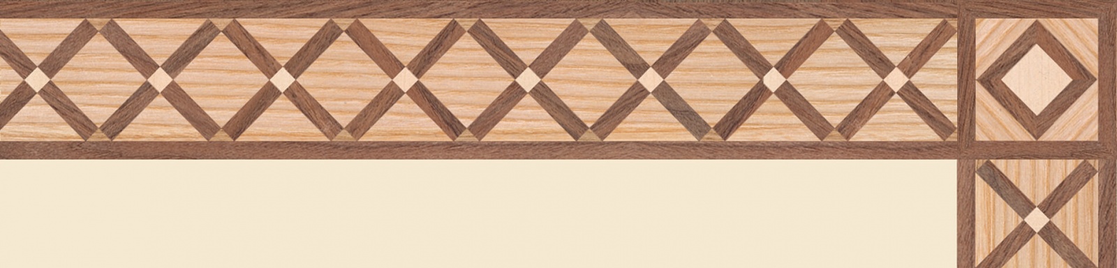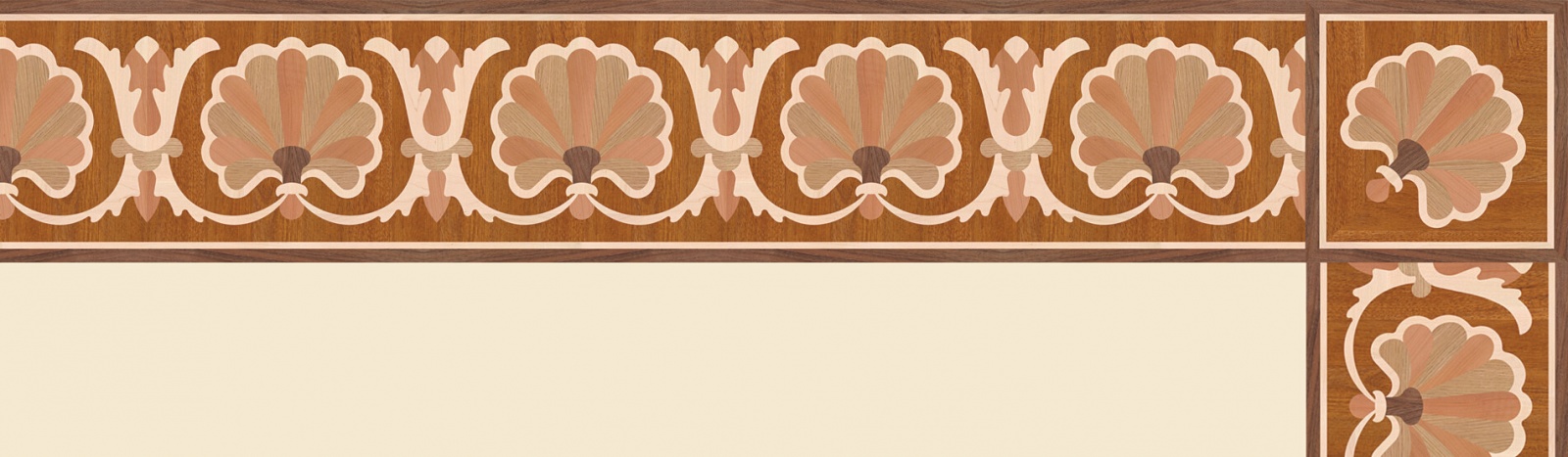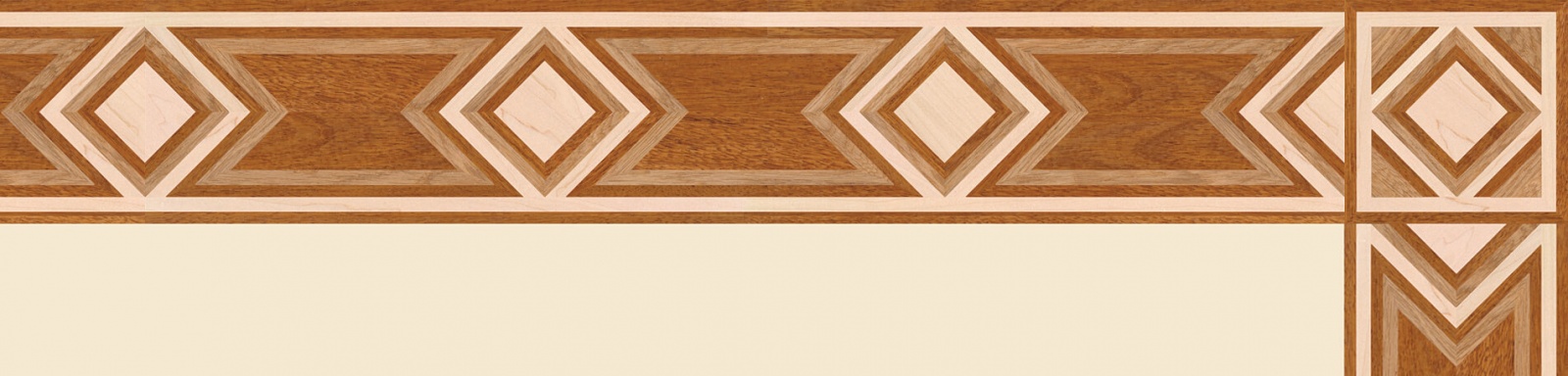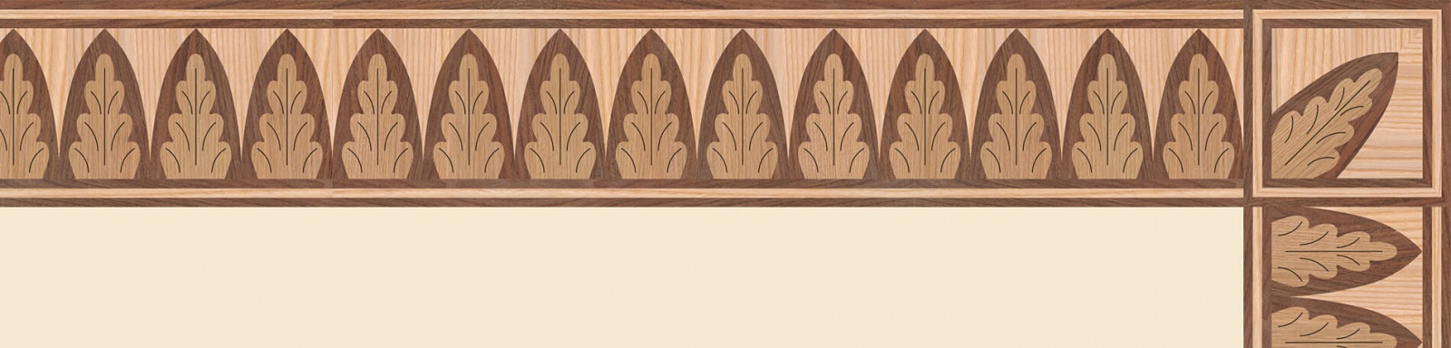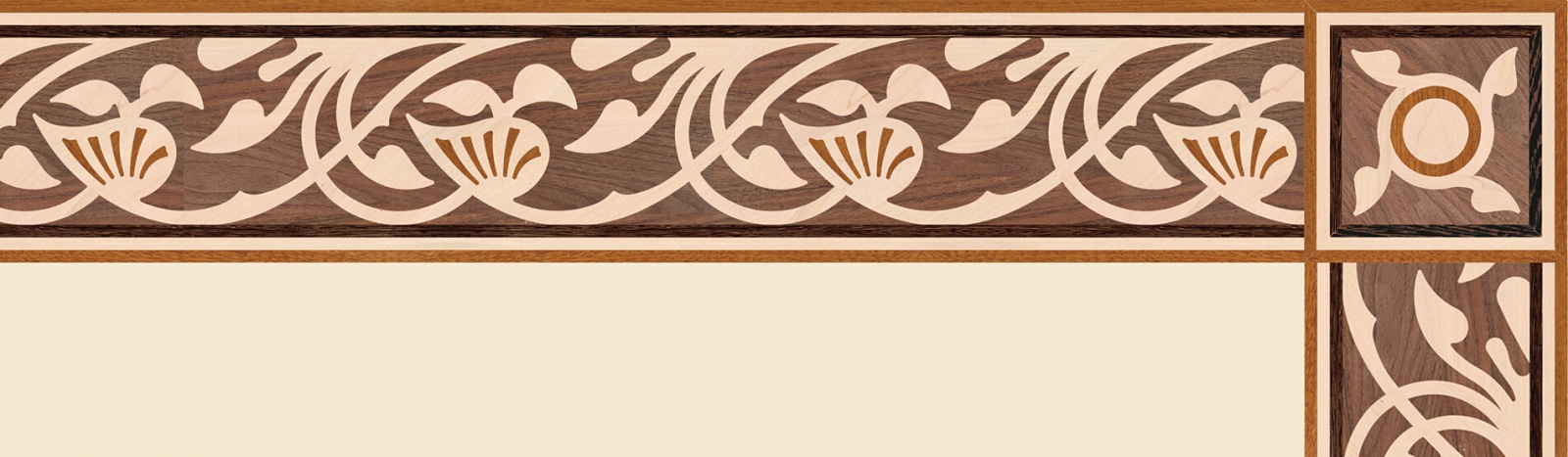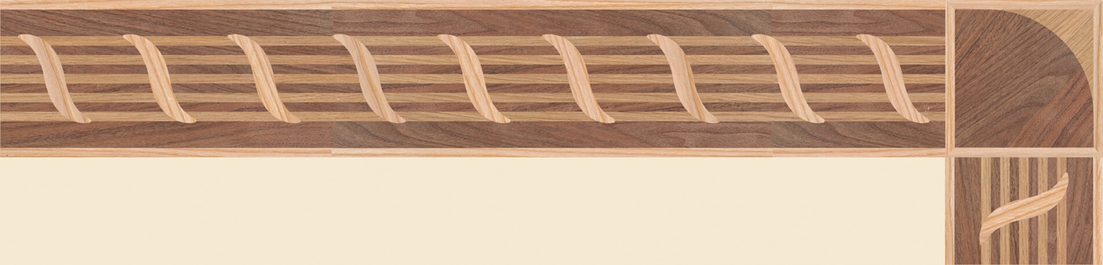 Художественные бордюры – важная составная часть художественного паркета. Они несут в себе сразу несколько функций. Первая из них – эстетическая, которая создается за счет законченности внешнего вида и рисунка пола. Вторая важная функция художественных бордюров, изготовленных из ценных пород дерева, состоит в эффективном зонировании пространства. С их помощью можно грамотно разделить пространство на нужные зоны, выделить центр комнаты, разметить площади для детской игры, отдыха, приема гостей. Зонирование с помощью художественных бордюров нередкое явление в современном оформлении помещений. Оно помогает избежать возведения физических заграждений между зонами, и тем самым сохраняет больше открытого пространства.