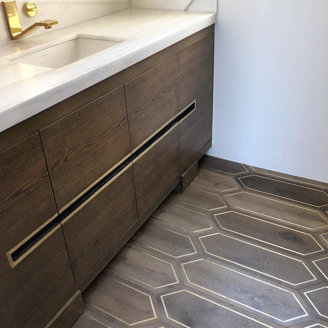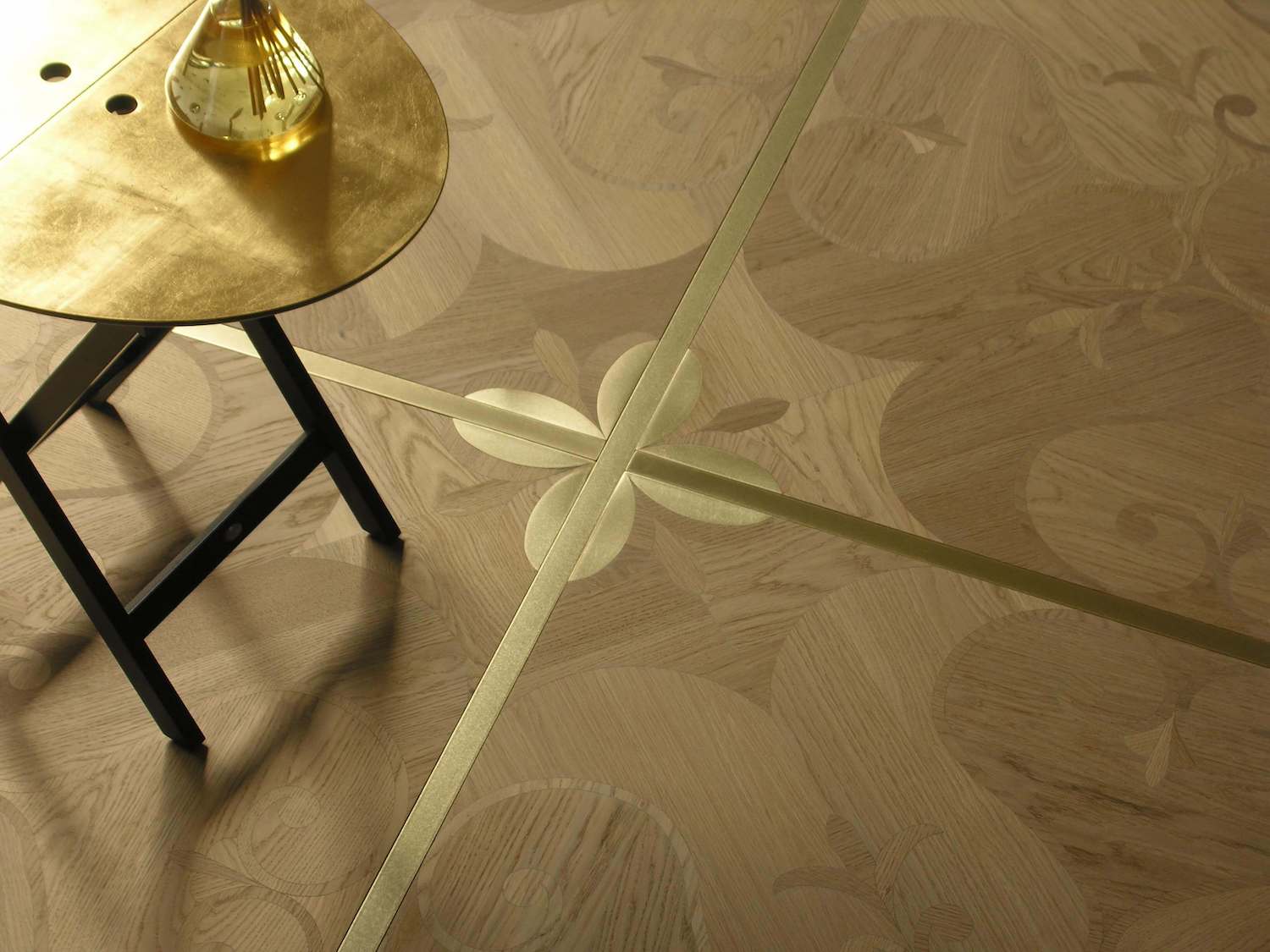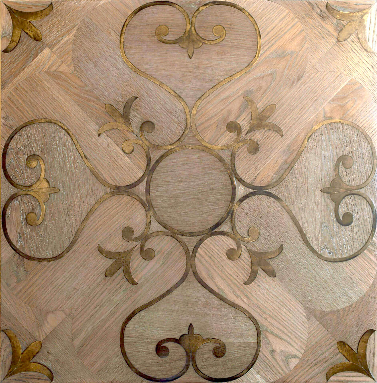 Помещение, в котором уложен паркет с металлическими вставками выходит из разряда просто помещений и становится предметом гордости своих хозяев, подчеркивая их респектабельность и вкус. Такие полы с годами не постареют, они станут произведением искусства. Вписать модули с металлом можно практически в любой интерьер, совершенно различной стилистикки, а грамотно подобранный бордюр станет подходящим обрамлением созданного великолепия. Мы работаем с различными металлами: паркет может быть с латунью, нержавеющей сталью, медью и другими вставками. Поверхность может быть отполирована до блеска или наоборот застарена.