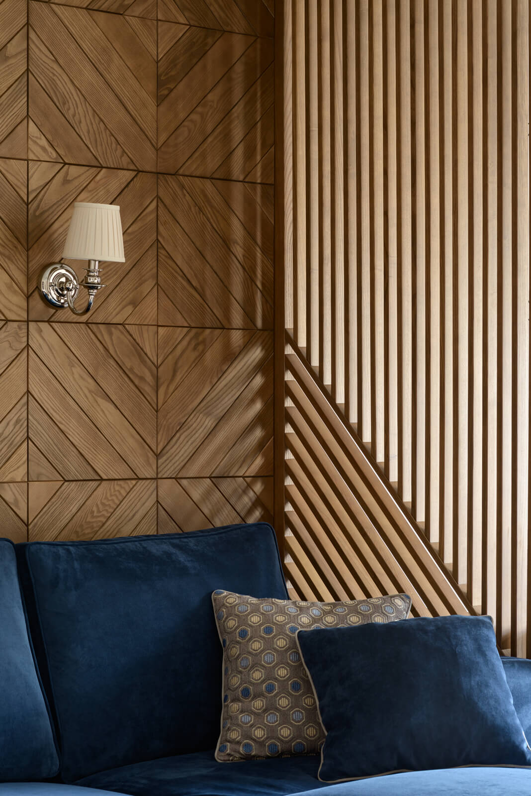 Деревянные стеновые панели — смелая альтернатива обоям, краске и штукатурке. Выполненные из массива натурального дерева, они выглядят дороже и интереснее привычной вагонки, вносят элемент эксклюзивности и делают общий дизайн интерьера выразительнее.
