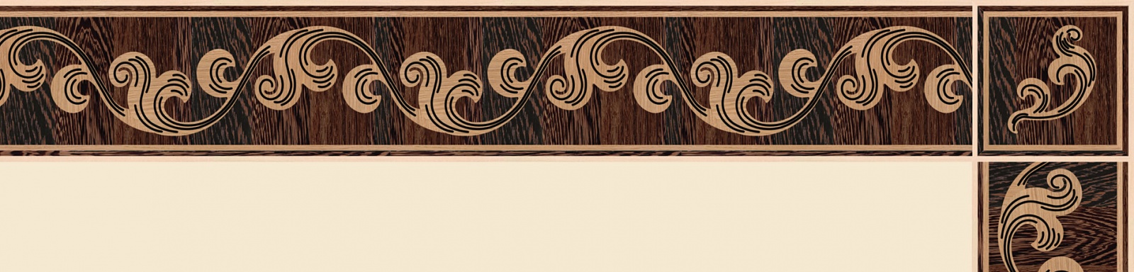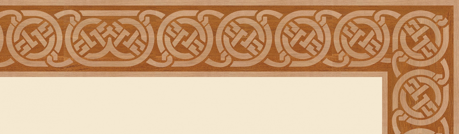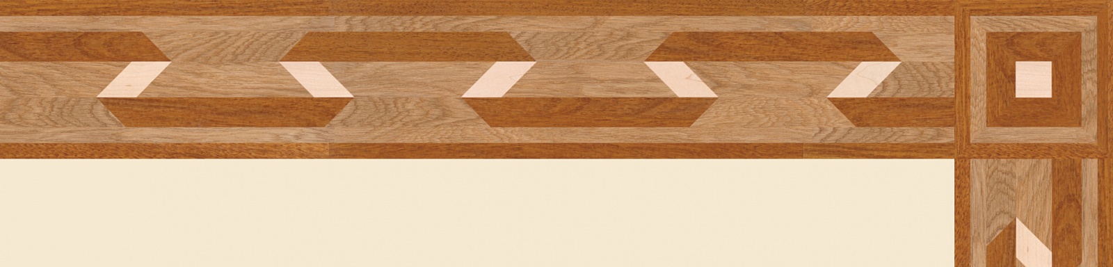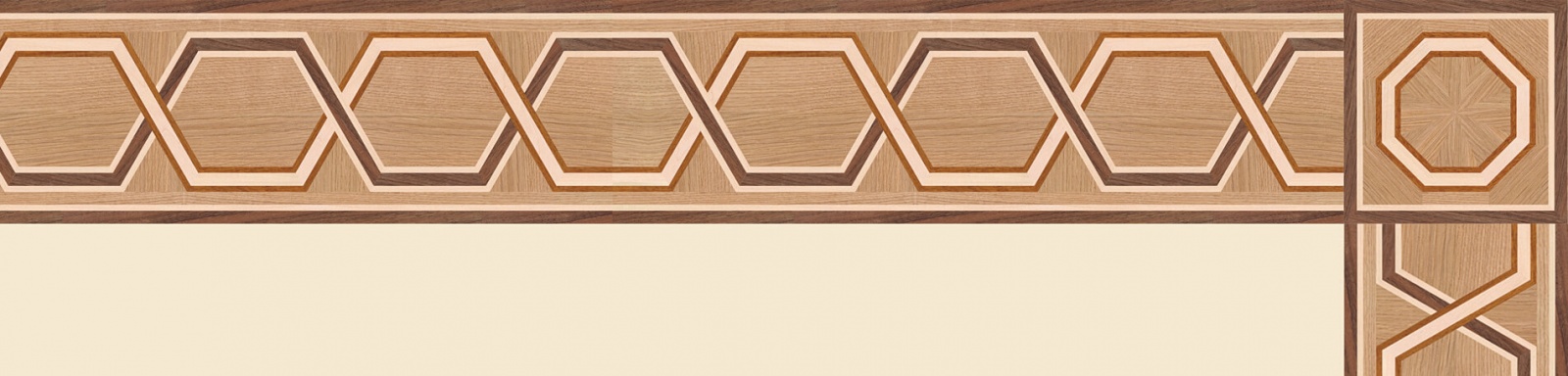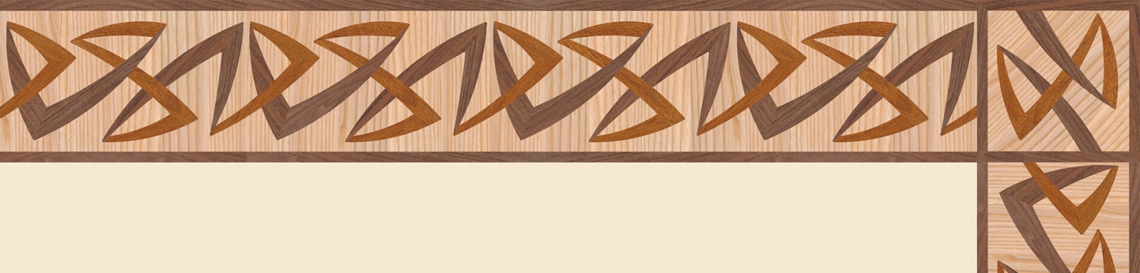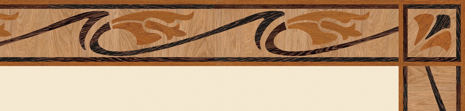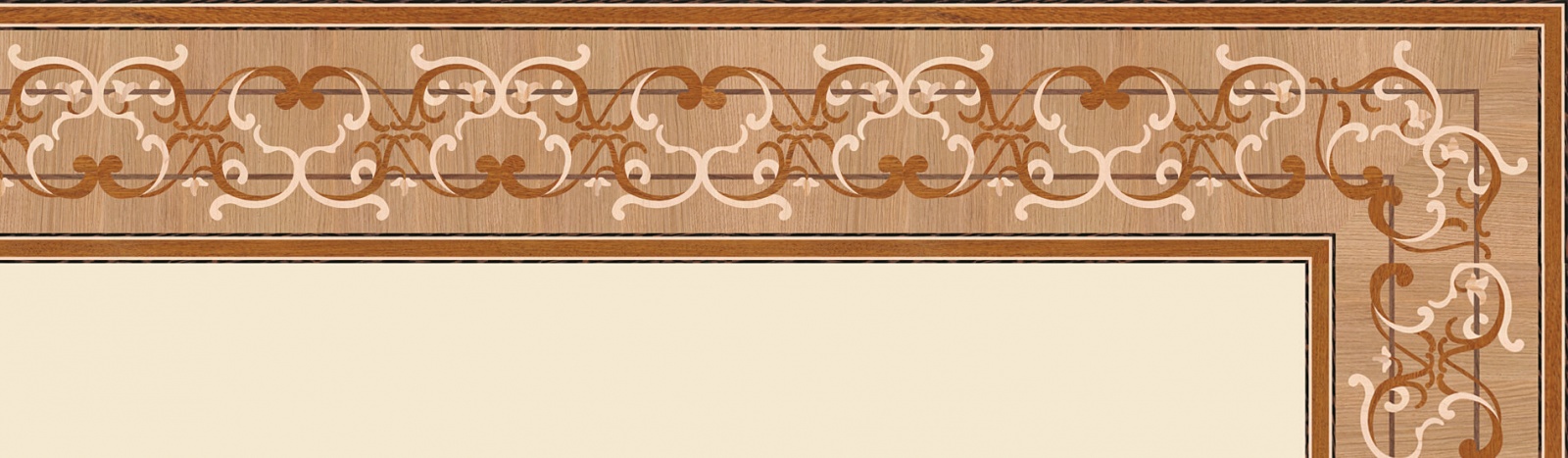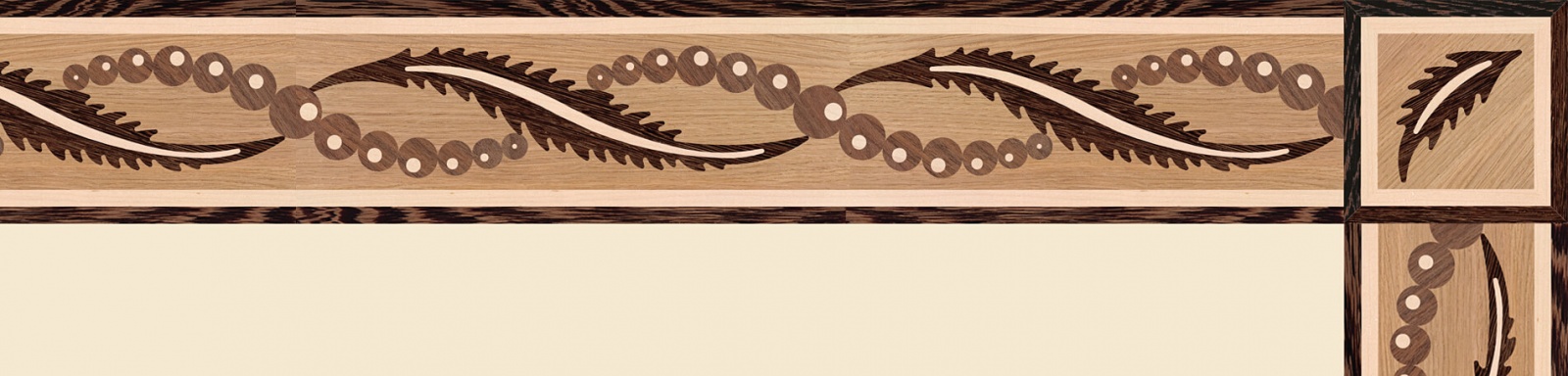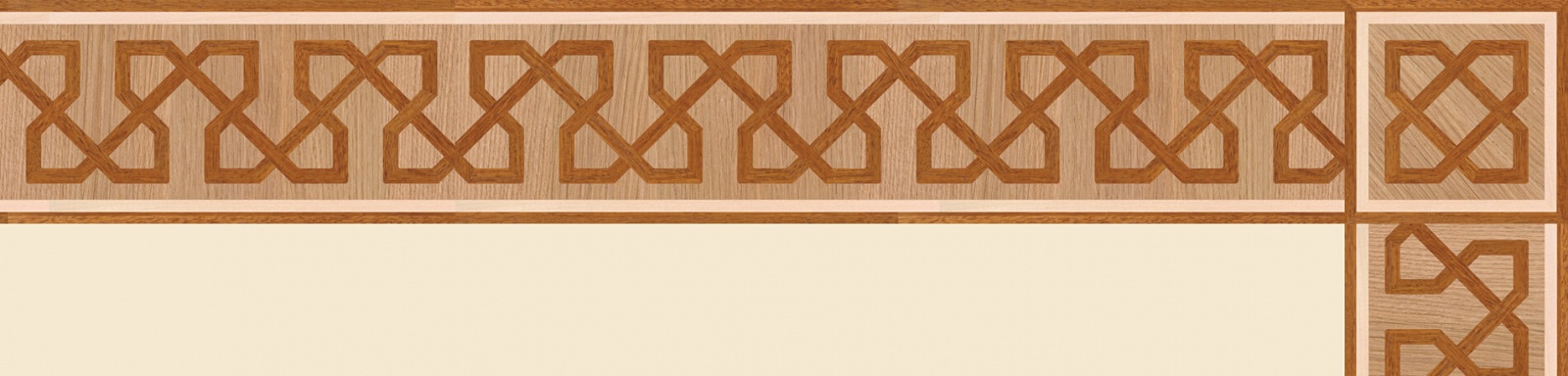 Художественные бордюры – важная составная часть художественного паркета. Они несут в себе сразу несколько функций. Первая из них – эстетическая, которая создается за счет законченности внешнего вида и рисунка пола. Вторая важная функция художественных бордюров, изготовленных из ценных пород дерева, состоит в эффективном зонировании пространства. С их помощью можно грамотно разделить пространство на нужные зоны, выделить центр комнаты, разметить площади для детской игры, отдыха, приема гостей. Зонирование с помощью художественных бордюров нередкое явление в современном оформлении помещений. Оно помогает избежать возведения физических заграждений между зонами, и тем самым сохраняет больше открытого пространства.