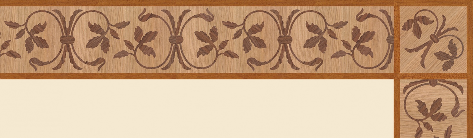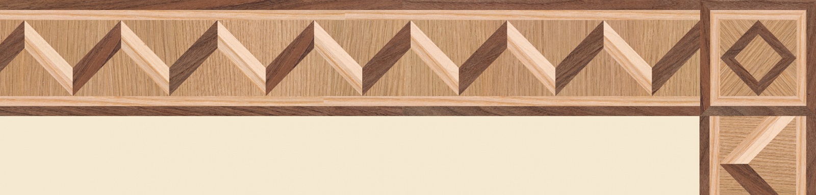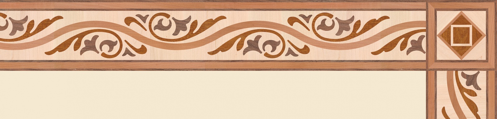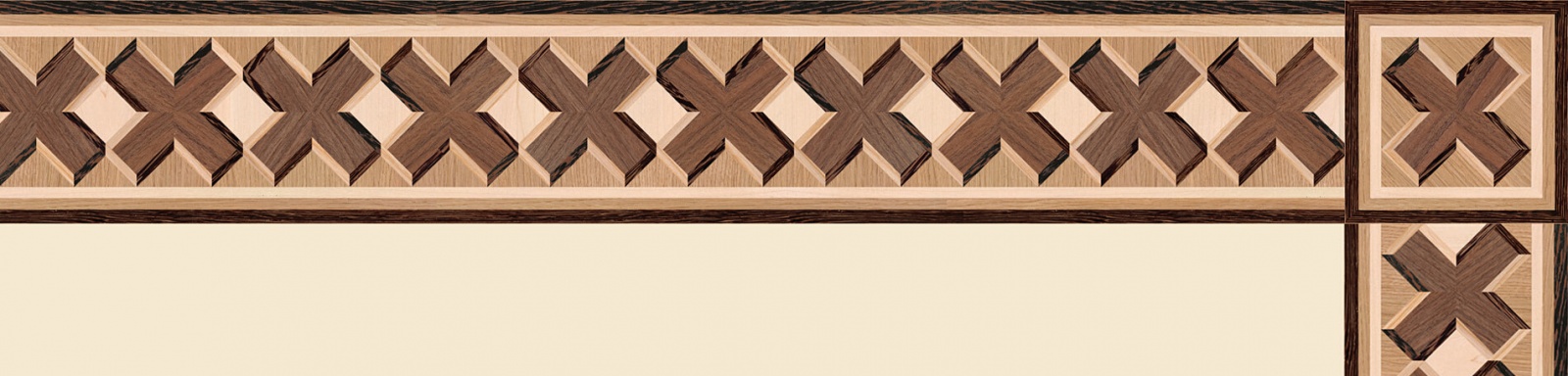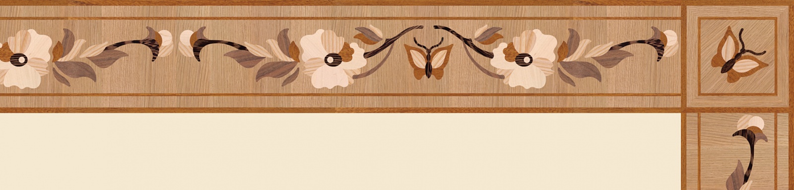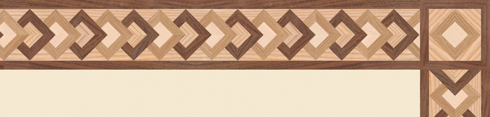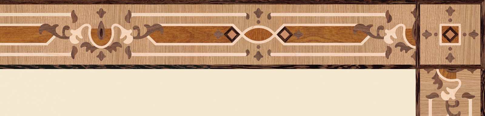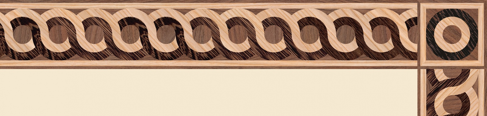 Художественные бордюры – важная составная часть художественного паркета. Они несут в себе сразу несколько функций. Первая из них – эстетическая, которая создается за счет законченности внешнего вида и рисунка пола. Вторая важная функция художественных бордюров, изготовленных из ценных пород дерева, состоит в эффективном зонировании пространства. С их помощью можно грамотно разделить пространство на нужные зоны, выделить центр комнаты, разметить площади для детской игры, отдыха, приема гостей. Зонирование с помощью художественных бордюров нередкое явление в современном оформлении помещений. Оно помогает избежать возведения физических заграждений между зонами, и тем самым сохраняет больше открытого пространства.