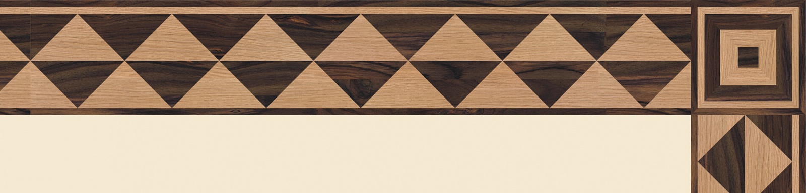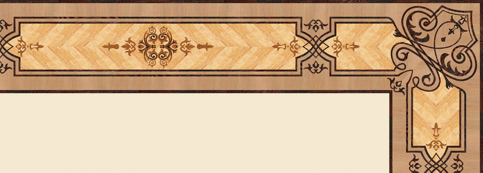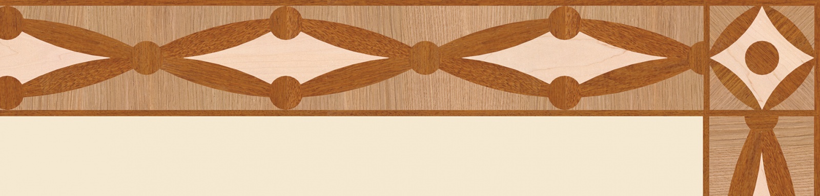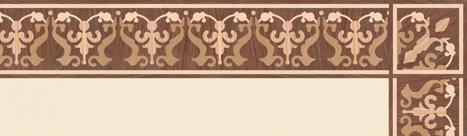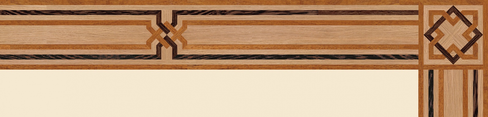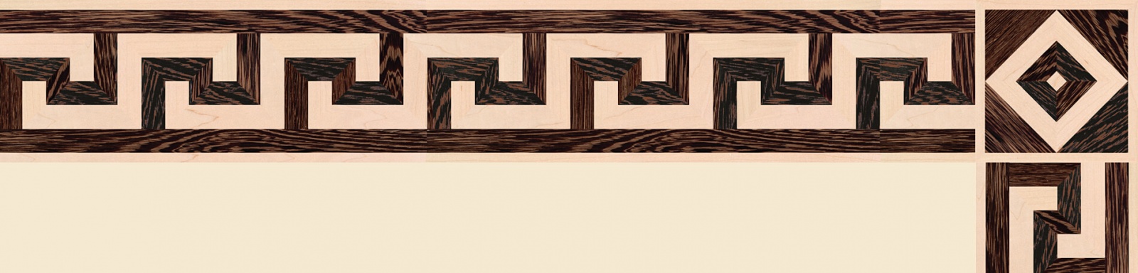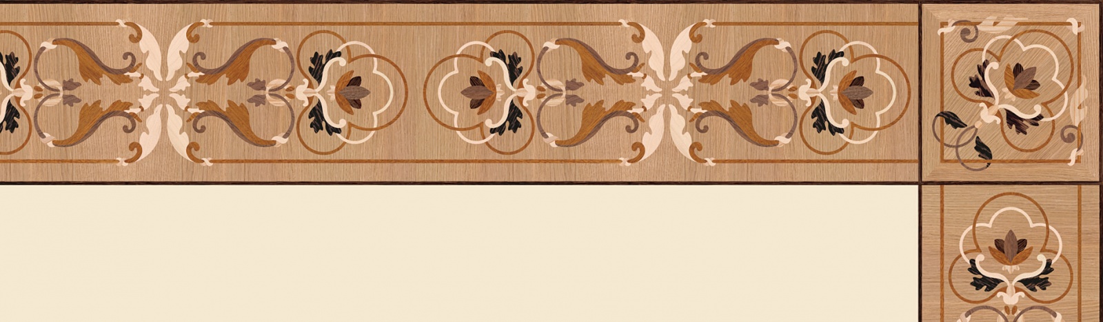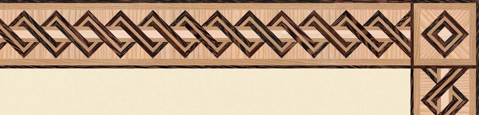 Художественные бордюры – важная составная часть художественного паркета. Они несут в себе сразу несколько функций. Первая из них – эстетическая, которая создается за счет законченности внешнего вида и рисунка пола. Вторая важная функция художественных бордюров, изготовленных из ценных пород дерева, состоит в эффективном зонировании пространства. С их помощью можно грамотно разделить пространство на нужные зоны, выделить центр комнаты, разметить площади для детской игры, отдыха, приема гостей. Зонирование с помощью художественных бордюров нередкое явление в современном оформлении помещений. Оно помогает избежать возведения физических заграждений между зонами, и тем самым сохраняет больше открытого пространства.