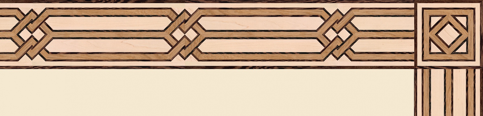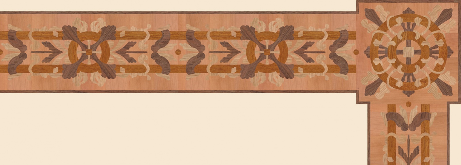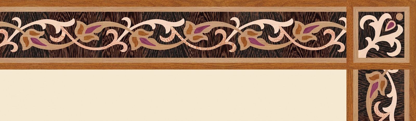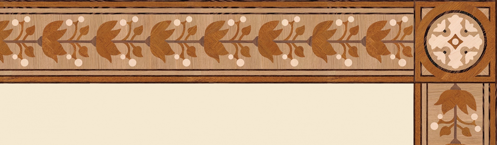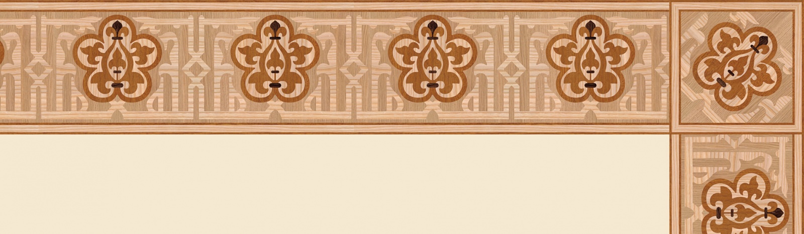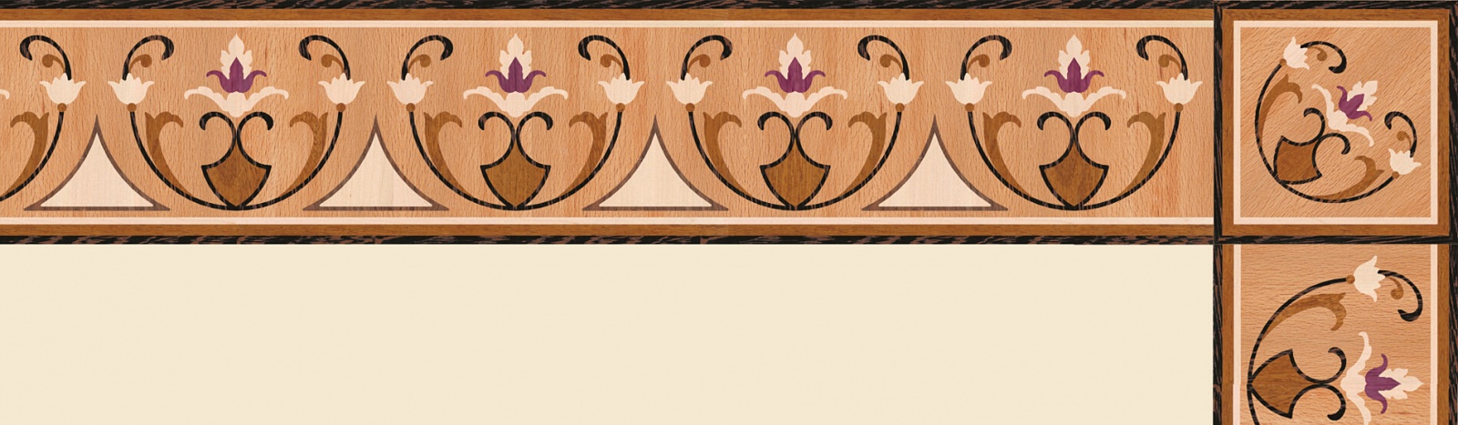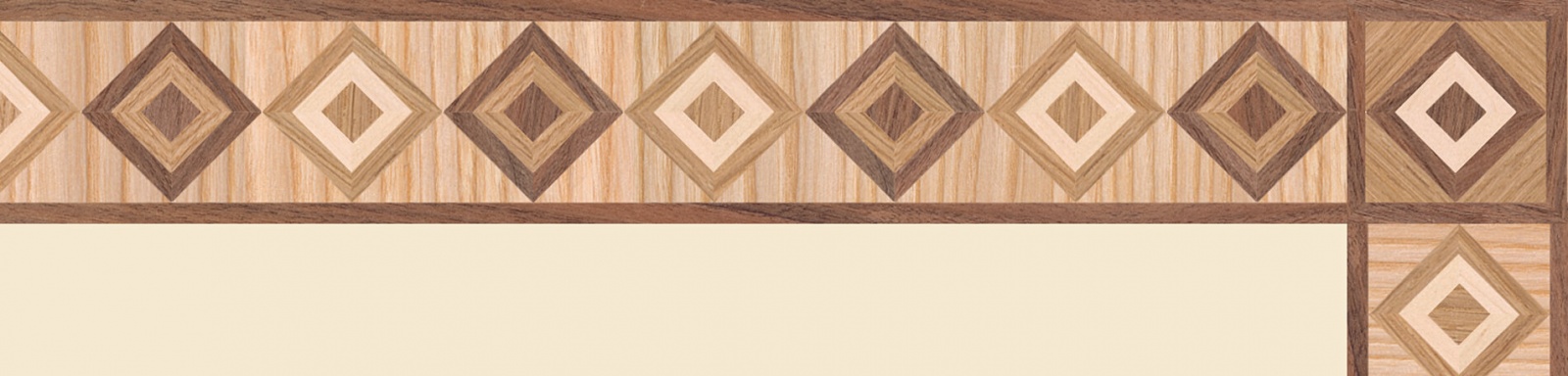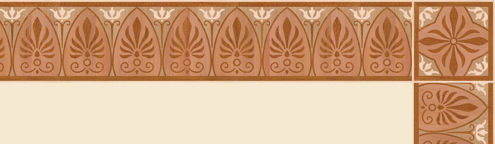 Художественные бордюры – важная составная часть художественного паркета. Они несут в себе сразу несколько функций. Первая из них – эстетическая, которая создается за счет законченности внешнего вида и рисунка пола. Вторая важная функция художественных бордюров, изготовленных из ценных пород дерева, состоит в эффективном зонировании пространства. С их помощью можно грамотно разделить пространство на нужные зоны, выделить центр комнаты, разметить площади для детской игры, отдыха, приема гостей. Зонирование с помощью художественных бордюров нередкое явление в современном оформлении помещений. Оно помогает избежать возведения физических заграждений между зонами, и тем самым сохраняет больше открытого пространства.