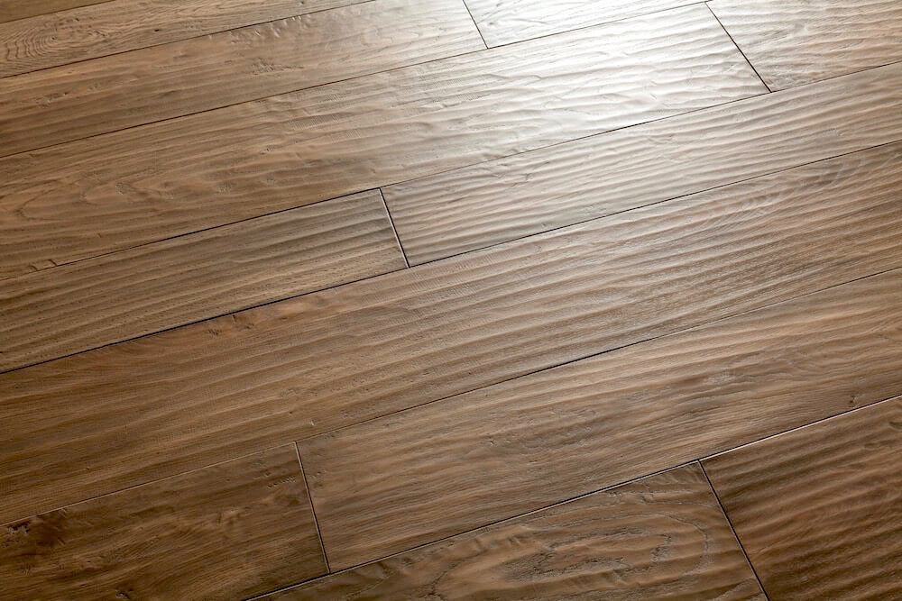 Хендстрип - ручная обработка поверхности досок рубанком. На лицевой части каждой доски создаётся уникальный рисунок волны. Она может представлять собой как ровные параллельные линии так и хаотичный рисунок. Глубже хендстрип - сильнее тактильные ощущения при ходьбе по такому полу. Обработка рубанком никак не мешает ни при ходьбе по полу ни при уборке.