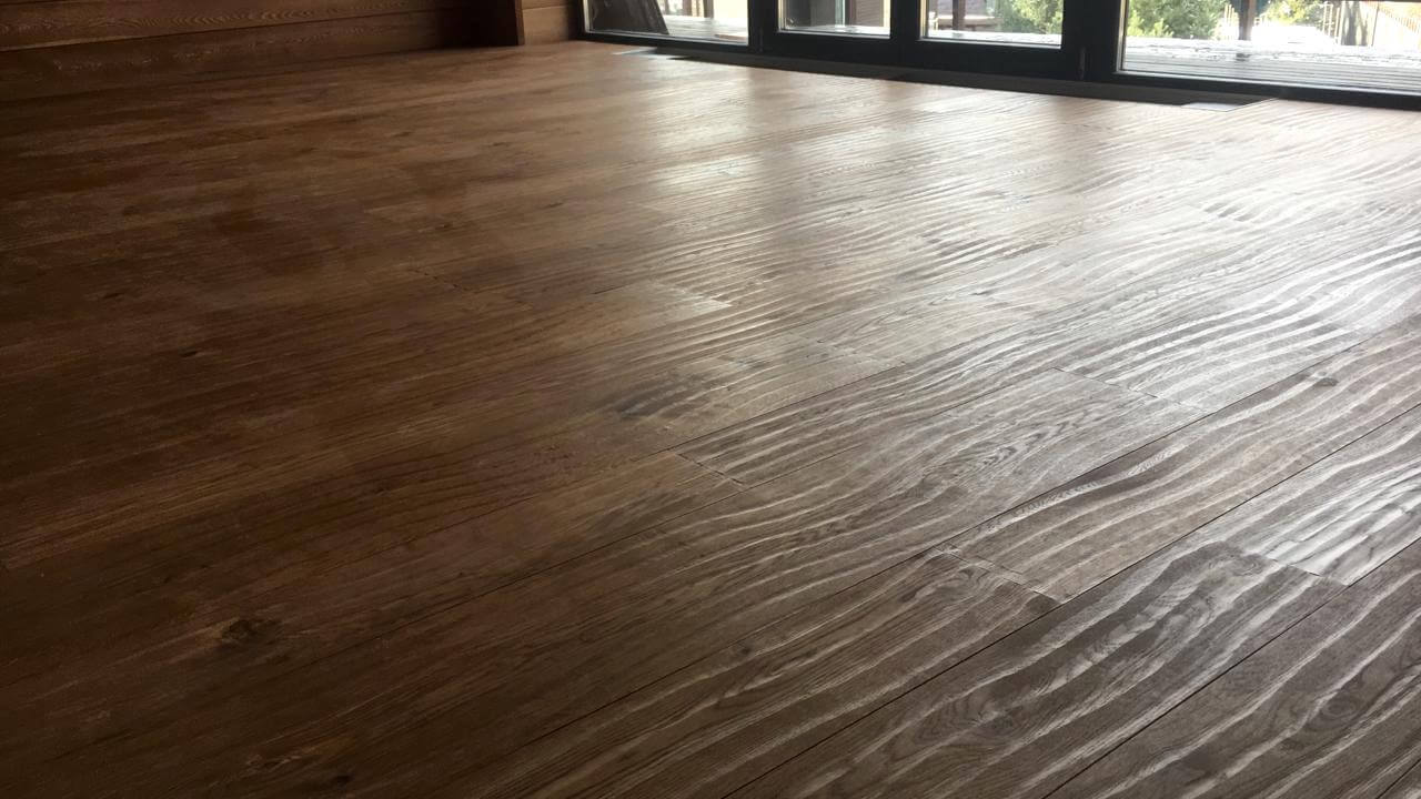 Браш - распространенный вариант обработки лицевой поверхности древесины. Специальной металлической или нейлоновой щеткой с поверхности доски вычёсываются мягкие волокна. При этом подчеркивается естественный рисунок дерева, доска становится слегка рельефной. Годичные кольца и сучки подчеркивают красоту древесного узора. Глубина браширования изменяется по желанию клиента. Это может быть как еле заметное изменение поверхности, так и грубая глубокая брашировка, создающая особенные тактильные ощущения.