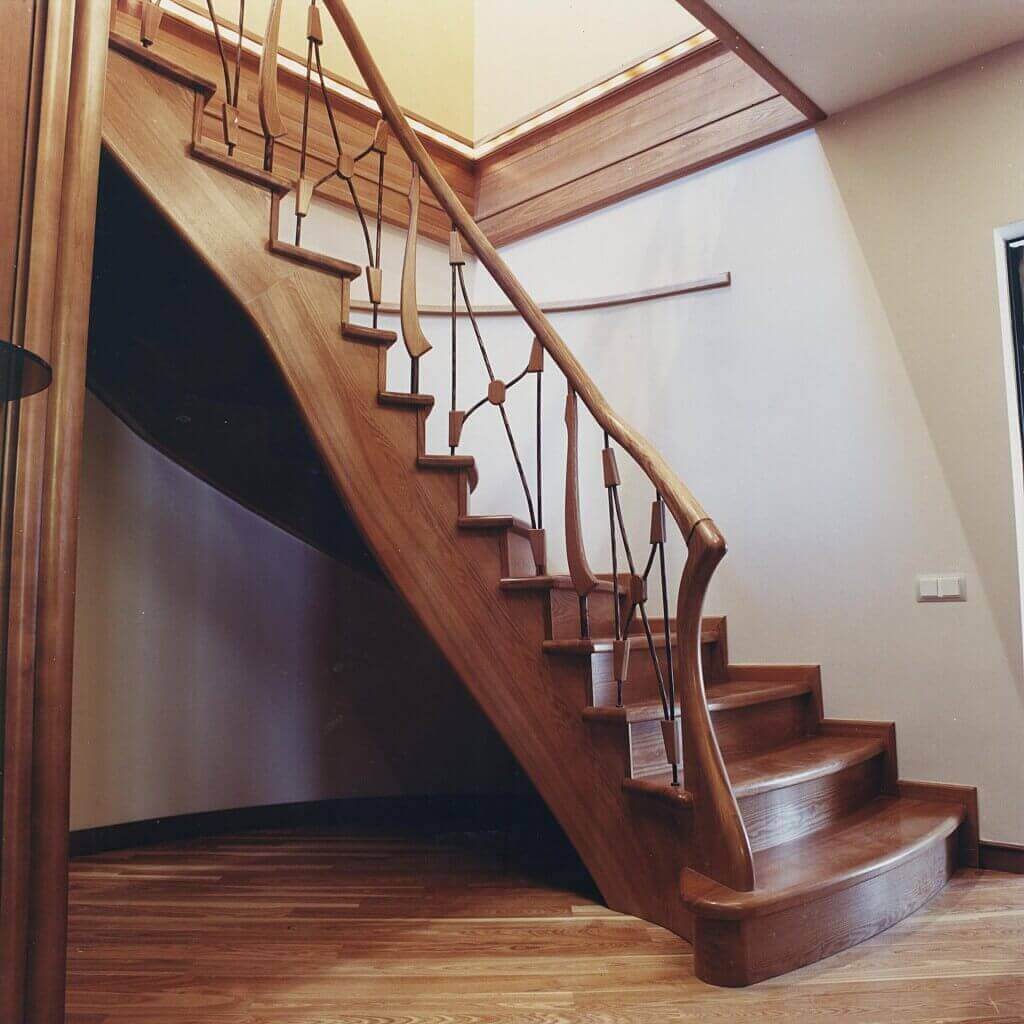 Наши клиенты предпочитают лестницы из дерева на заказ, выполненные из ореха или дуба. Это самые крепкие породы, устойчивые к постоянной нагрузке и изменению микроклимата в помещениях. При этом мы можем выполнить тонировку древесины в другой цвет, имитируя различные породы: венге, тик, мербау, дуб сонома и т.д. По желанию клиента мы можем использовать другие породы древесины для изготовления ступеней, столбов, балясин, подступенков, поворотных площадок и перил.